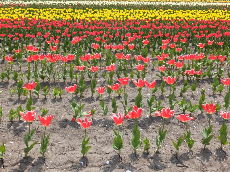 今年は天候の影響で、開花が遅れ、パンジーに植え替えたエリアもあるようですが。それでも4割が咲いていました。ポップコーンのような花。まさしく品種名は「ポップコーン」。新種だそうです。球根の向きをそろえて植えているので、葉っぱの向きもそろっているそうです。そんなこと、知りませんでした。コントラストがすごいです。↑ 次回記事も期待の方は一日1クリック プリーズ。