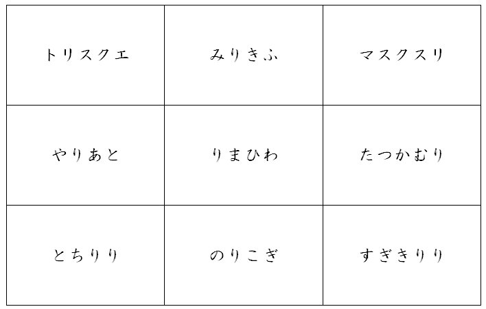 今回は「り」が必ず入っているバージョンです。