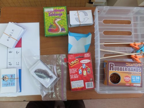なお、カードは「箸」にして、目的先に「ラーメン」とかの絵カードを貼り付けておくと楽しいです。
