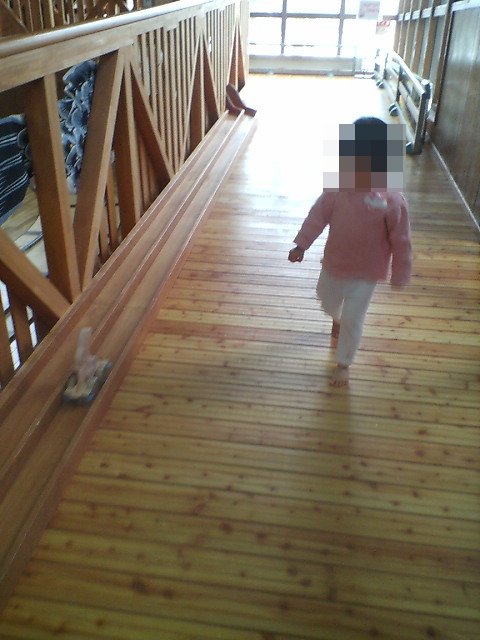 その上に立って、ひもで引っ張られながら、