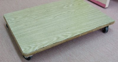 机の天板にキャスターをつけて、簡易スクーター。