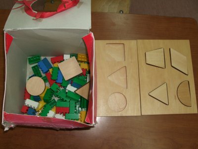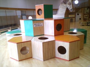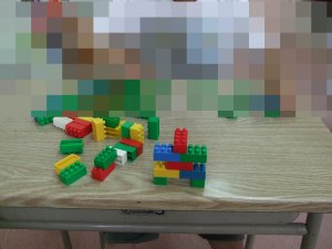 積木を見つけ、形を言い当てる。