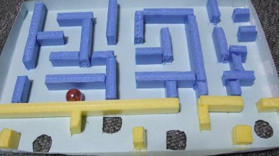 上手になってきたので、障害物を置いて避けて通るように。